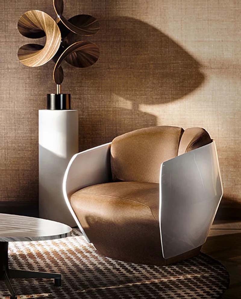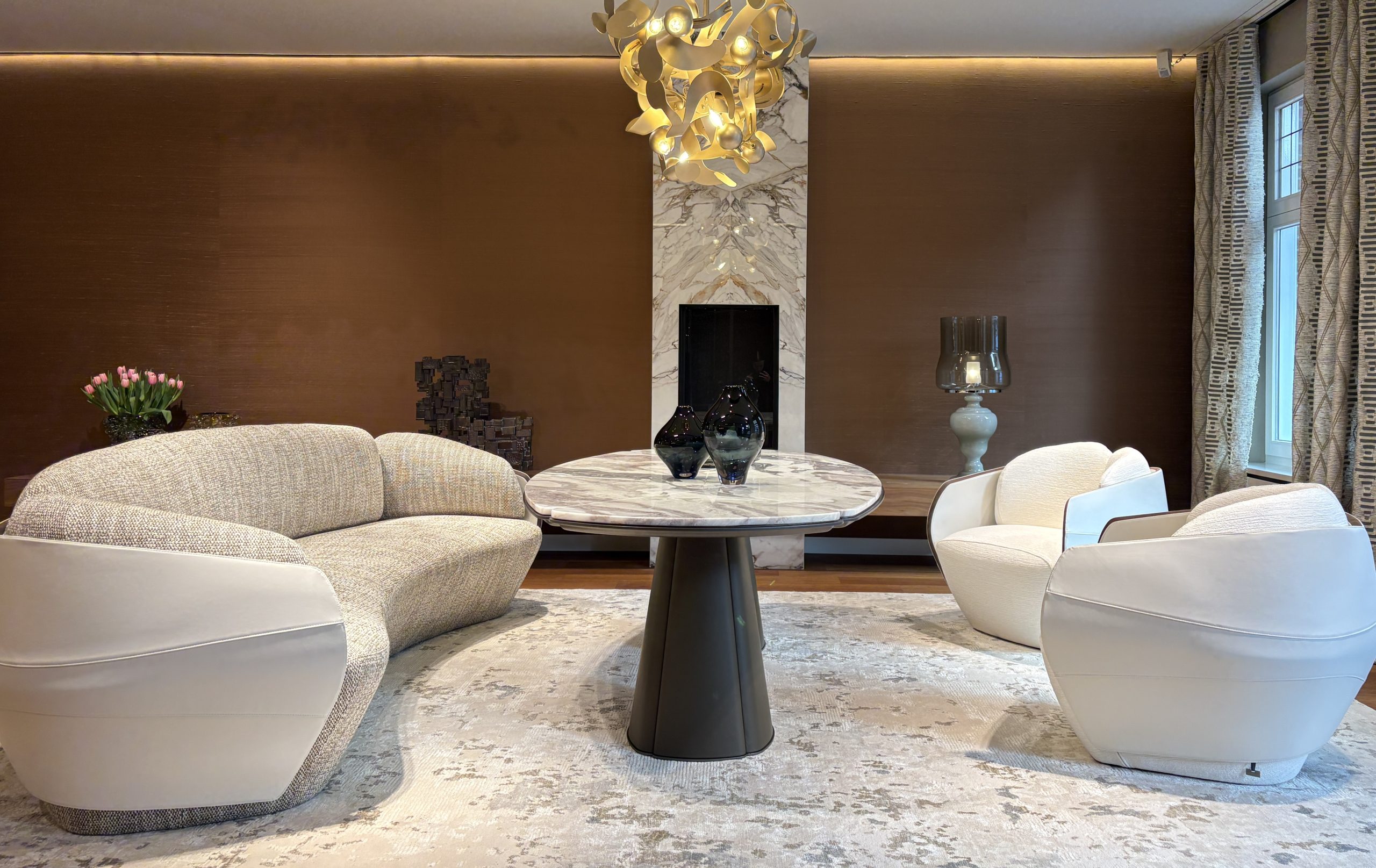 De Lorelei fauteuil en sofa uit de Giorgetti Maserati Edition zijn opgenomen in ons showroomconcept als een krachtig sculpturaal statement. De vloeiende vormen en omarmende belijning sluiten naadloos aan bij onze visie op tijdloos design, comfort en vakmanschap. Geïnspireerd door de iconische zitvormen van Maserati, bestaat het ontwerp uit een dynamische compositie van buitenste schalen die zowel visueel als fysiek een gevoel van geborgenheid creëren. In onze showroom komt deze gelaagde vormtaal volledig tot zijn recht, waarbij materiaal, afwerking en proportie samen een sterk ruimtelijk geheel vormen. De Lorelei fauteuil en sofa zijn in onze showroom te ervaren. Wij nodigen u graag uit om de kwaliteit, het zitcomfort en de materialiteit zelf te ontdekken en te beleven binnen de context van onze zorgvuldig samengestelde interieurpresentatie.